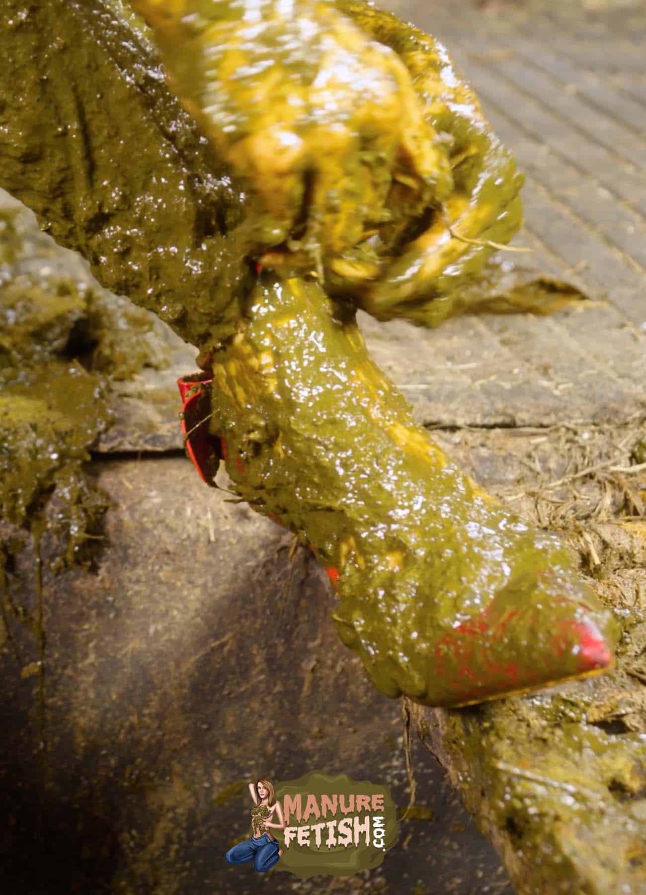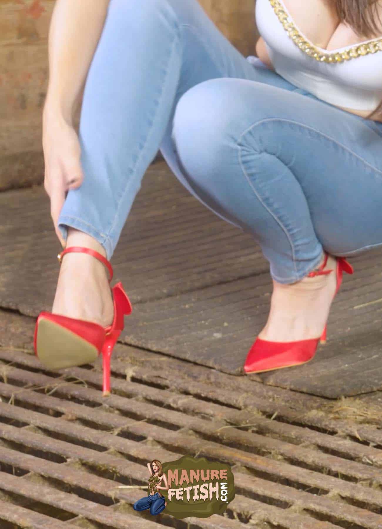 You’ll receive the Red High Heels in the state from after the video shoot, it’s completely covered in cowshit. The Red High Heels are Size EU 41.