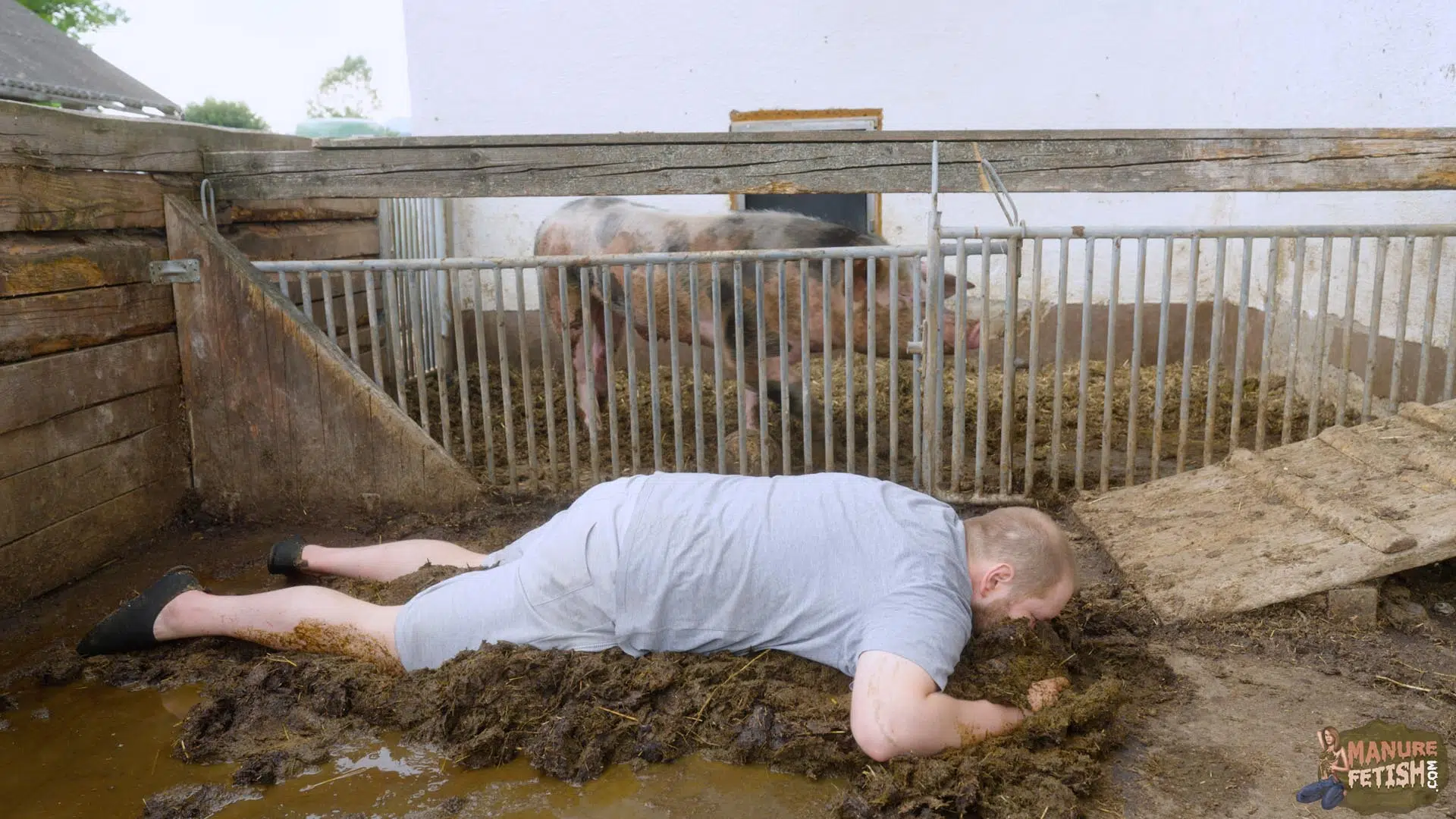Thank you for the new situation to the farm shit fantasies. It was a welcome surprise to see Franky right in the pig pen, the big fat hog watching over him as he strips into nudity to roll around in piles of pig shit. Although the texture is not as easy to enjoy in deep submersion like the luxurious cow shit, Franky makes a wonderful show of smashing his entire body into the muck, smearing it around, and enjoying his masculine masturbation with huge helpings of pig shit. Love that he was fully committed to let go and pound out his pig hole. Wish it made him OINK as loud as a hog!