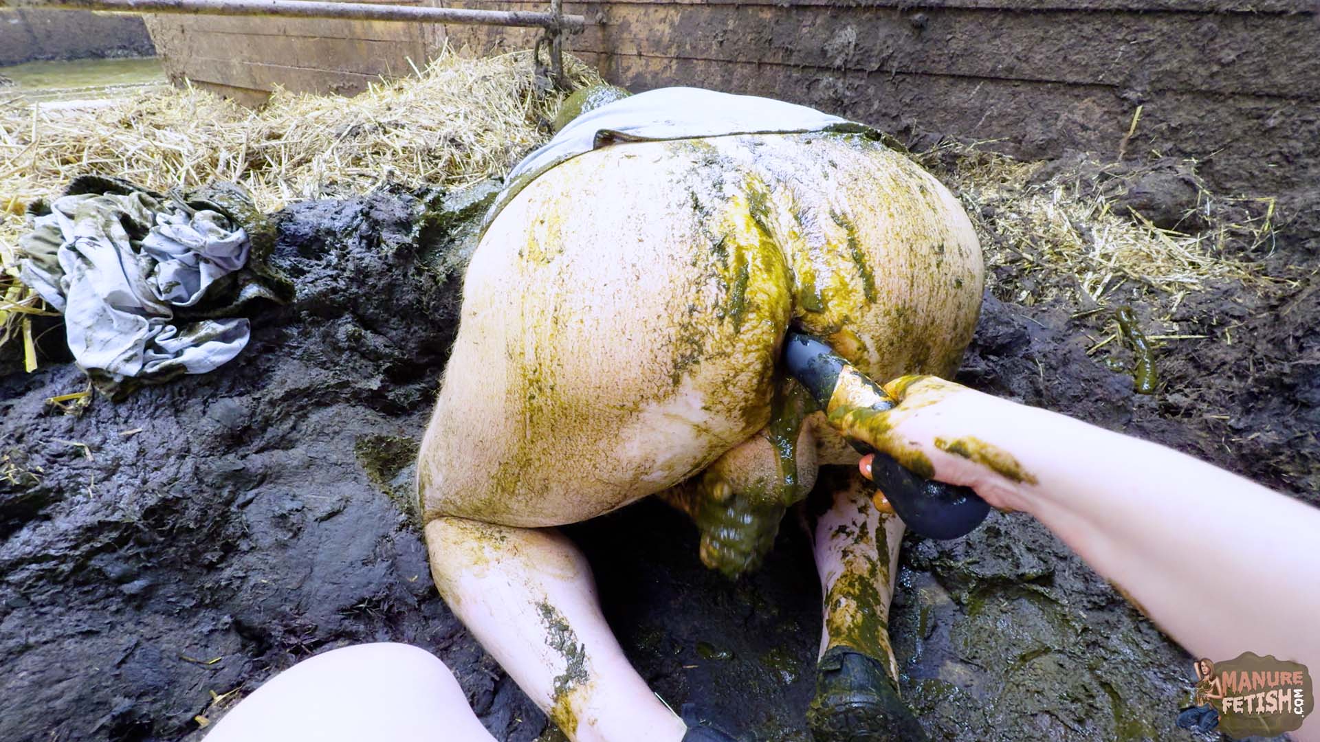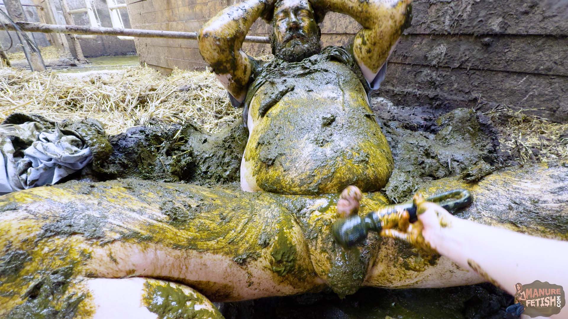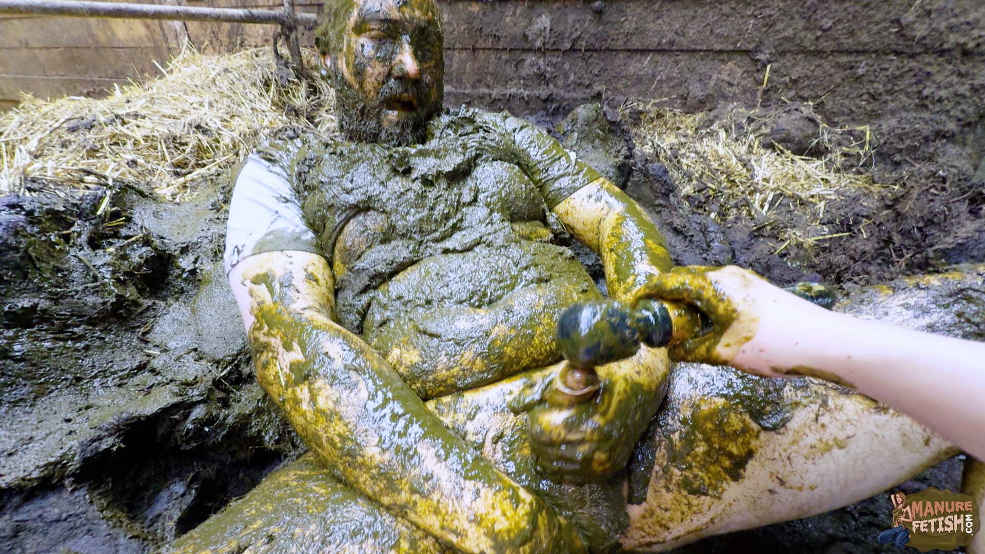 On a normal day on the farm Lyndra is checking on Franky who’s working in the milking room. He’s checking the milking machine. She wants to have some fun together with Franky, so she demands that he pushes his head in the container behind the milking machine. Where all the cowshit ends up while the cows are being milked. After his head dunk, his head is completely covered with creamy cowshit, now Lyndra jerks Franky’s cock a bit, before she ask him to fuck the shit in the container. While he’s fucking the cowshit, Lyndra prepares some toys to fuck his ass. He’s now submerging his head in the container, jerking off and getting his ass fucked by Lyndra. She’s not yet down with him and has another nice spot to have more fun. Lyndra is now walking with Franky to the main room in the cowshed, where she has another nice spot for him. In a box there’s a nice pile up of cowshit. Franky pushes his face in the cowshit, while Lyndra is penetrating his asshole. She uses different toys on him. Franky turns around is jerking off his cock while Lyndra fucks his ass and is holding the vibrating dildo on his cock. Franky has a nice orgasm and cumshot and decides to stay there a few more minutes while Lyndra walks away.