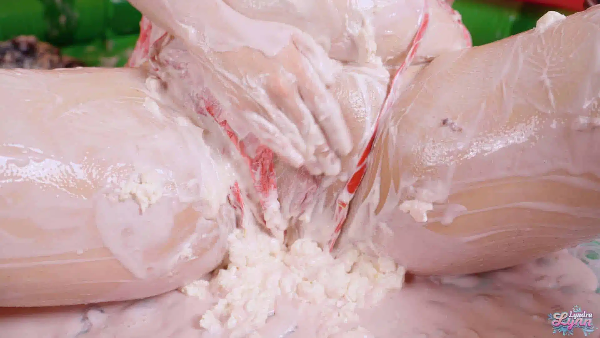 I wanted to try out some new combinations so this time I got a lot of different yoghurts, whipped cream and a bucket of green slime. I begin in covering myself with the yoghurt, first my nice black dress then my body. It’s feels so nice dripping down my body. I take off my dress so I’m now only in my underwear and use even more yoghurt on my body, then I take the whipped cream cover my pussy in it and start masturbating, first using my fingers, then both of the dildos. I also fill my pussy with whipped cream before fucking it. In the end I use everything I have, yoghurt, slime, whipped cream, to cover my whole body in it, before I fuck myself to multiple orgasms.