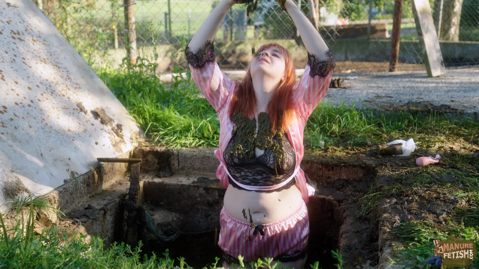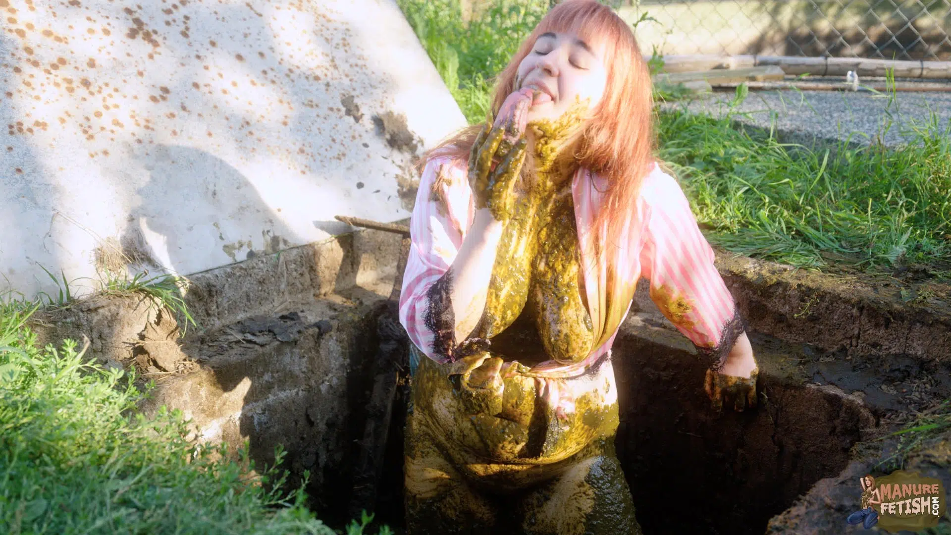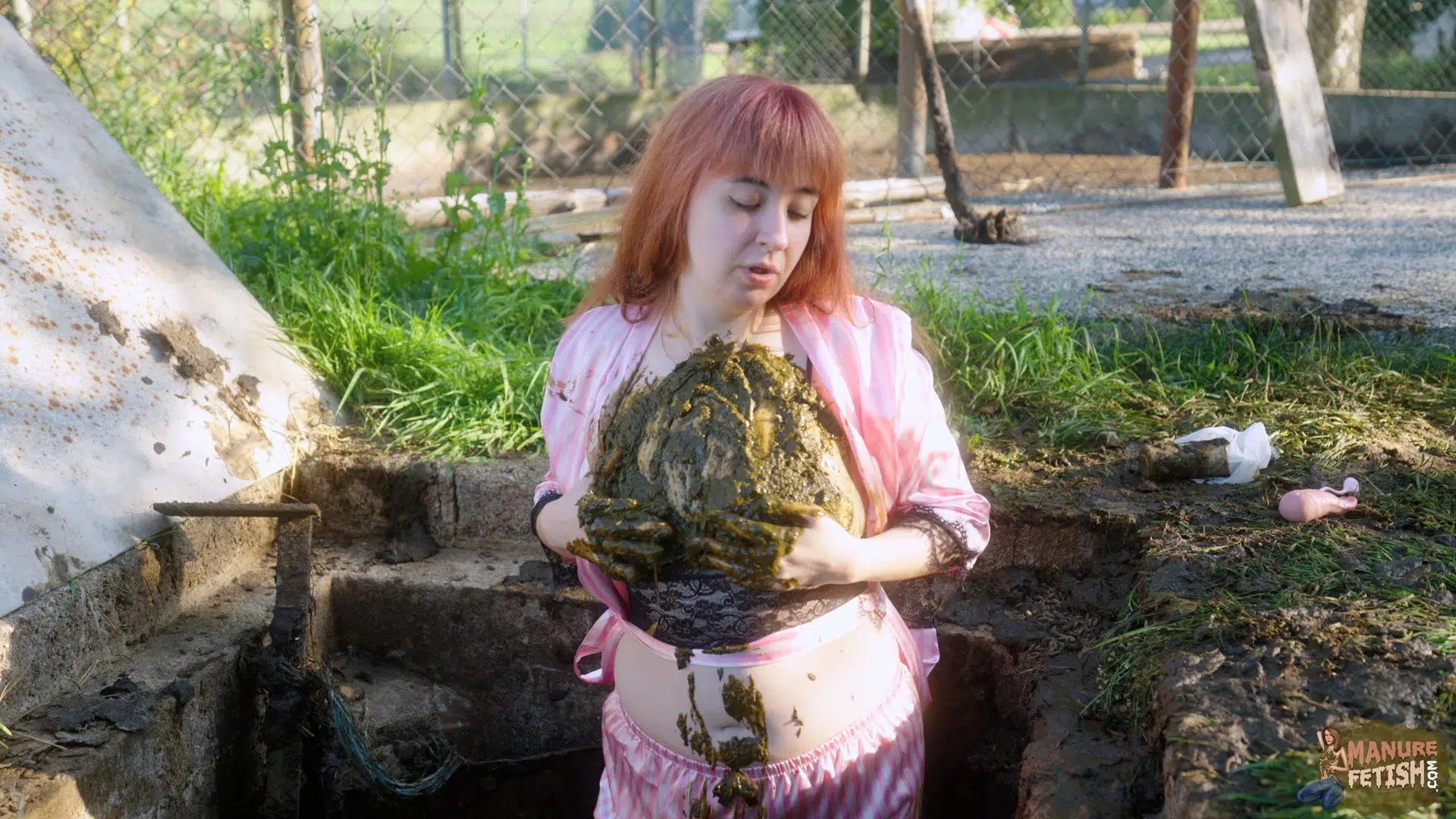It’s a beautiful morning at the farm, as Lyndra wakes up she walks straight outside in the sun. As she walks past the large manure pits she finds the manure shaft open, which awakens her curiosity. She sits on the edge, plays in the cowshit with her feet before slowly sliding in. She grabs some cowshit and lets it drip on her chest. Lyndra Lynn smears her body really slowly enjoying the feeling of the cowshit on her skin, before submerging her sexy ass in the manure shaft. After she has covered herself in enough shit she pulls out her toys and begins to masturbate inside and outside of the manure shaft while in between smearing and submerging in cowshit.