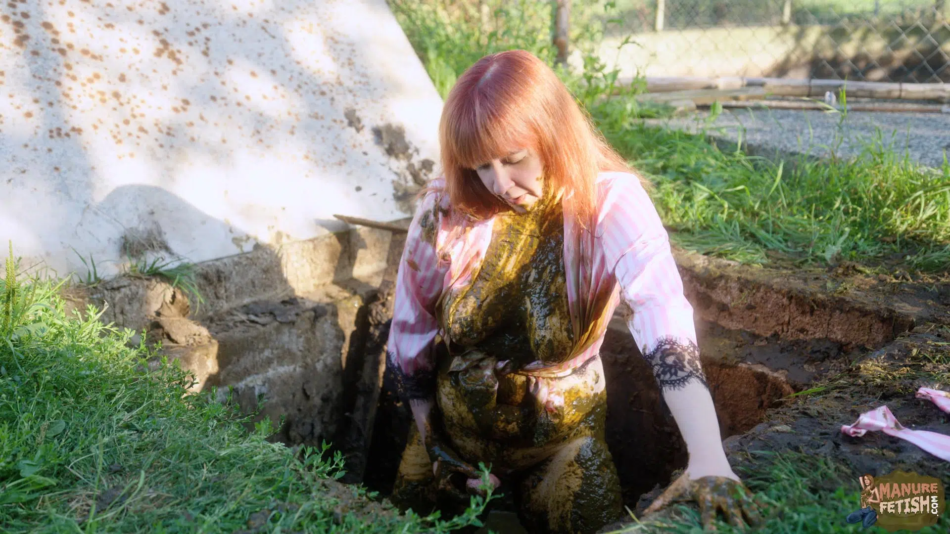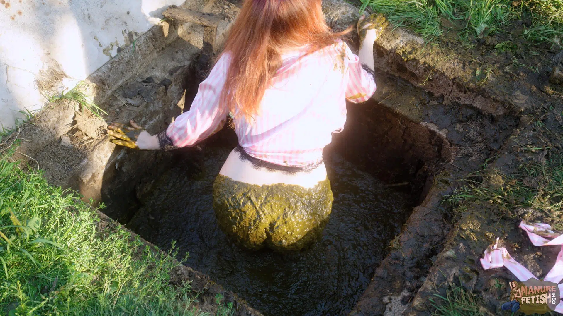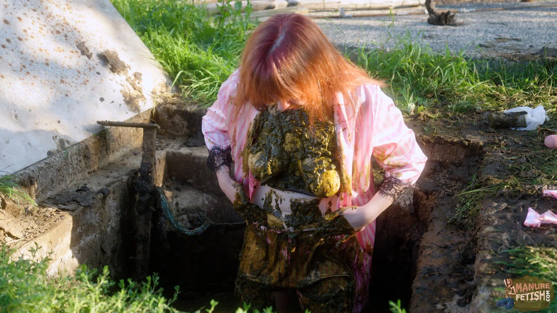 It’s a beautiful morning at the farm, as Lyndra wakes up she walks straight outside in the sun. As she walks past the large manure pits she finds the manure shaft open, which awakens her curiosity. She sits on the edge, plays in the cowshit with her feet before slowly sliding in. She grabs some cowshit and lets it drip on her chest. Lyndra Lynn smears her body really slowly enjoying the feeling of the cowshit on her skin, before submerging her sexy ass in the manure shaft. After she has covered herself in enough shit she pulls out her toys and begins to masturbate inside and outside of the manure shaft while in between smearing and submerging in cowshit.