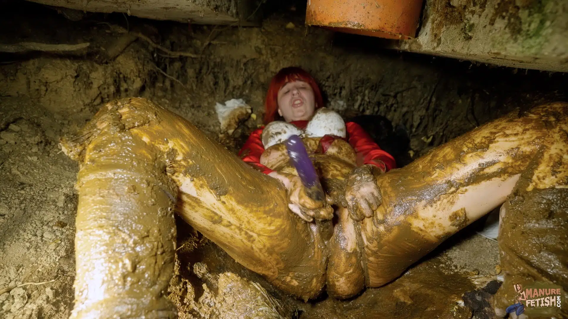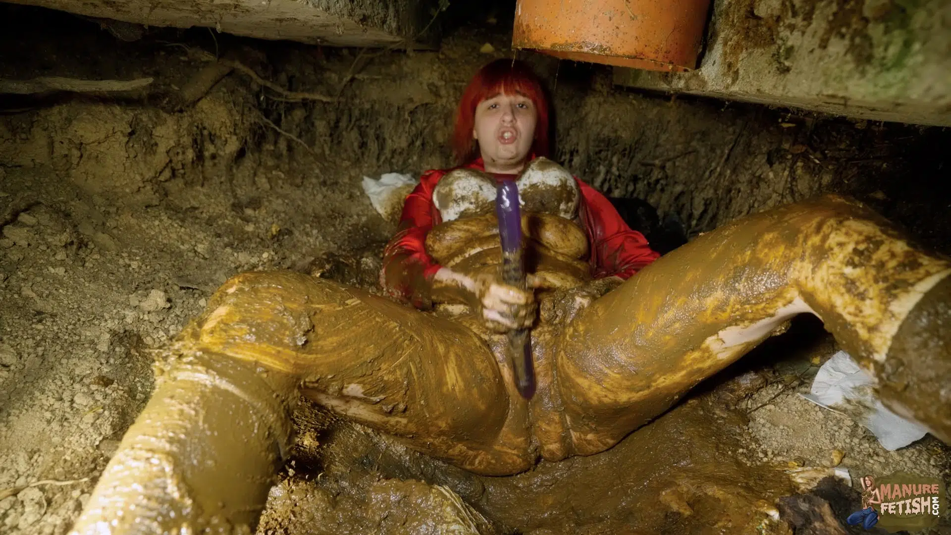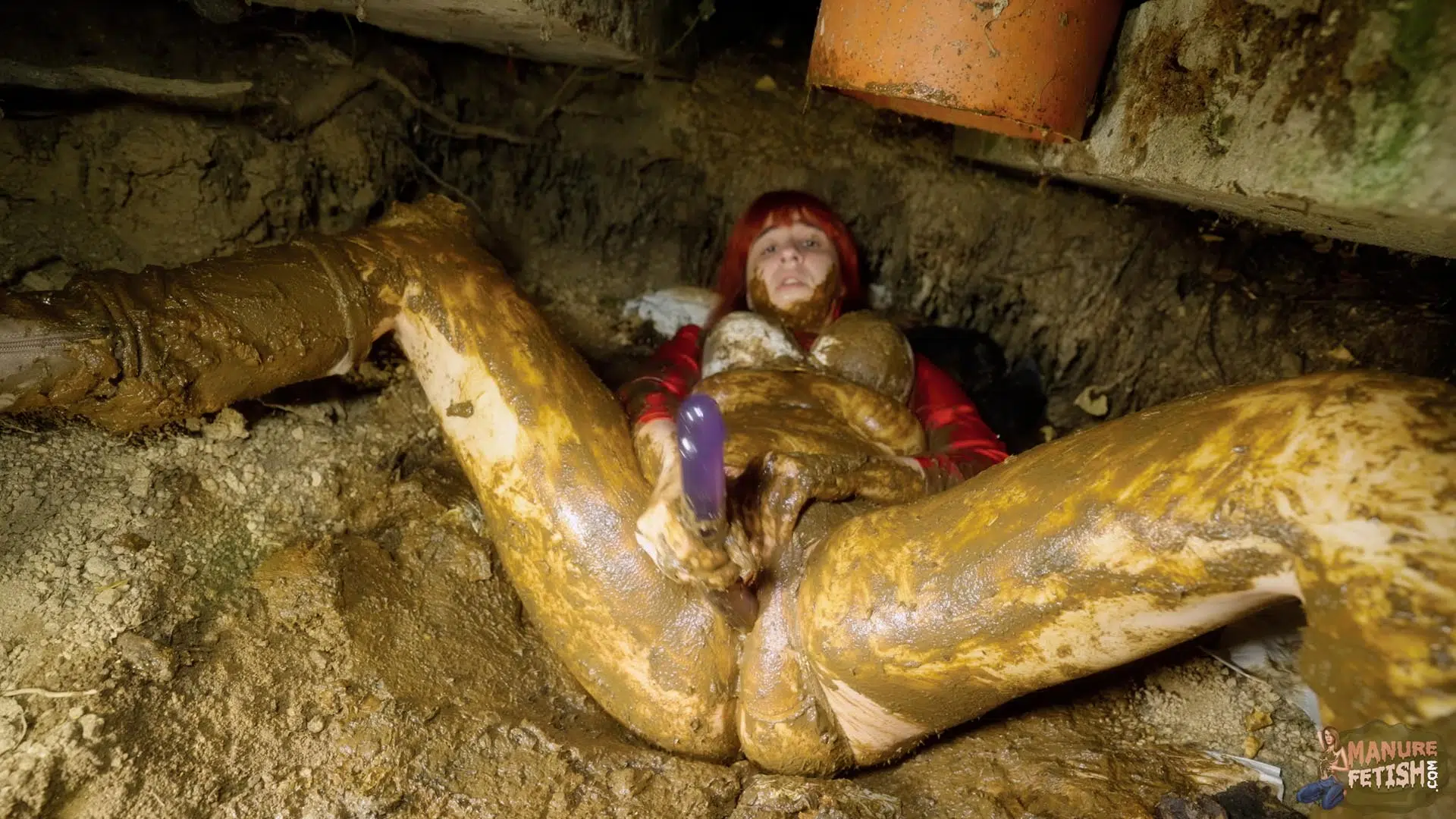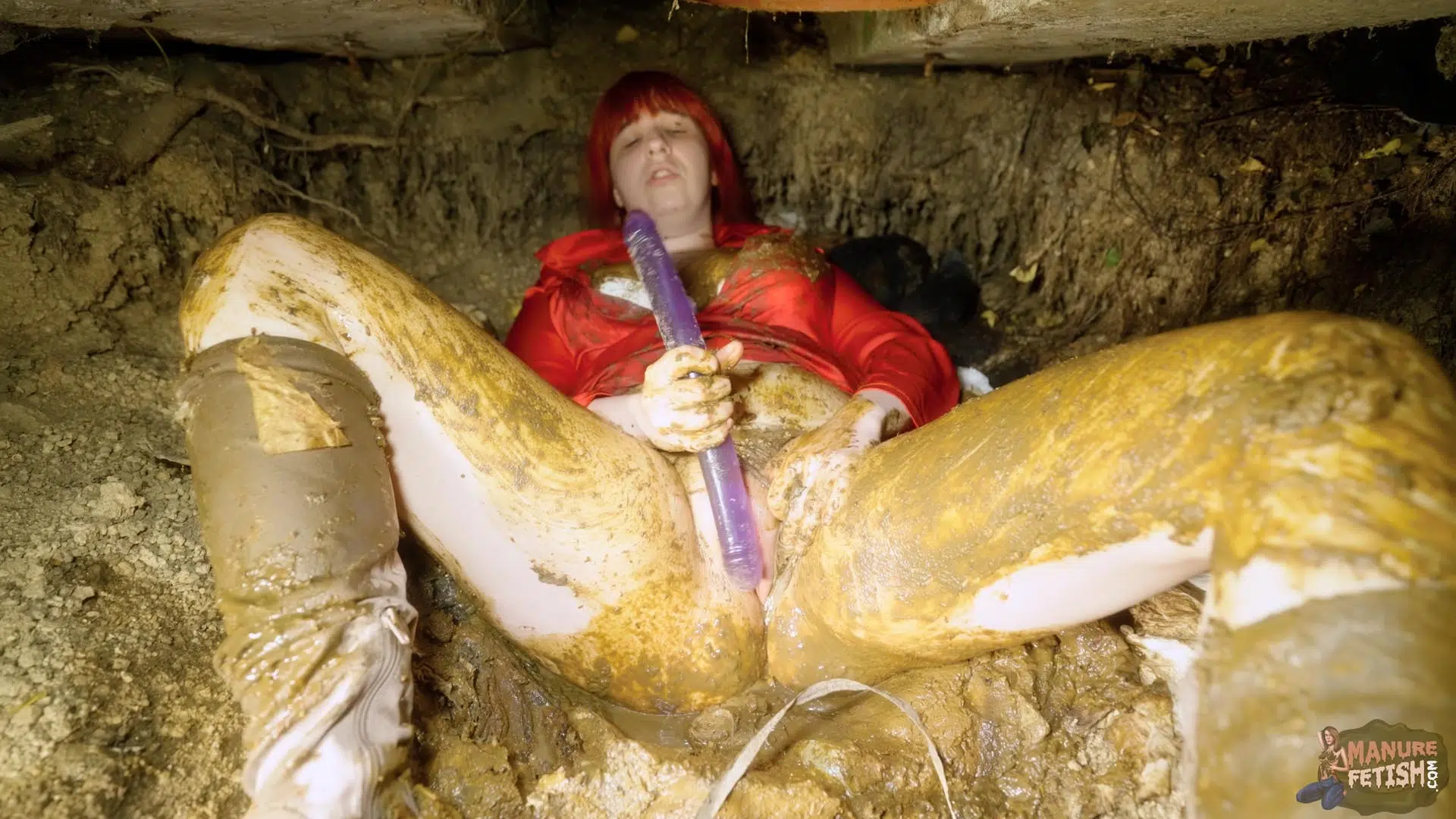 Now I’m finally in there in all that mess, ready to start my filthiest adventure ever. I slowly begin to smear the shit around my clothes and legs. Of course I brought a toy, I want to fuck myself hard while being covered in all that shit. At first it was really disgusting but I started to like it, it was so extreme fucking myself under an outhouse. Somehow I wished more shit would come from above, someone shitting right on me while I fuck myself. But sadly it didn’t happen so I had to shit on my own, to add some fresh creamy shit. Then I fingered and fucked my wet pussy hard. After I had an amazing orgasm I carefully climbed out of the hole, completely covered in shit and I was so happy.