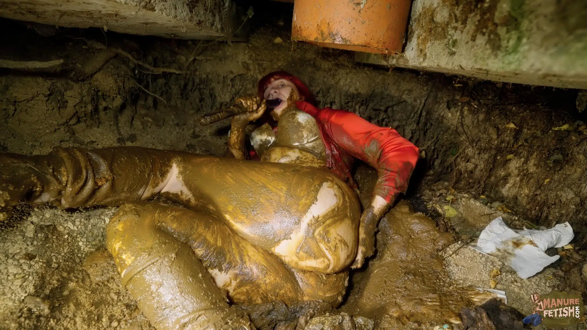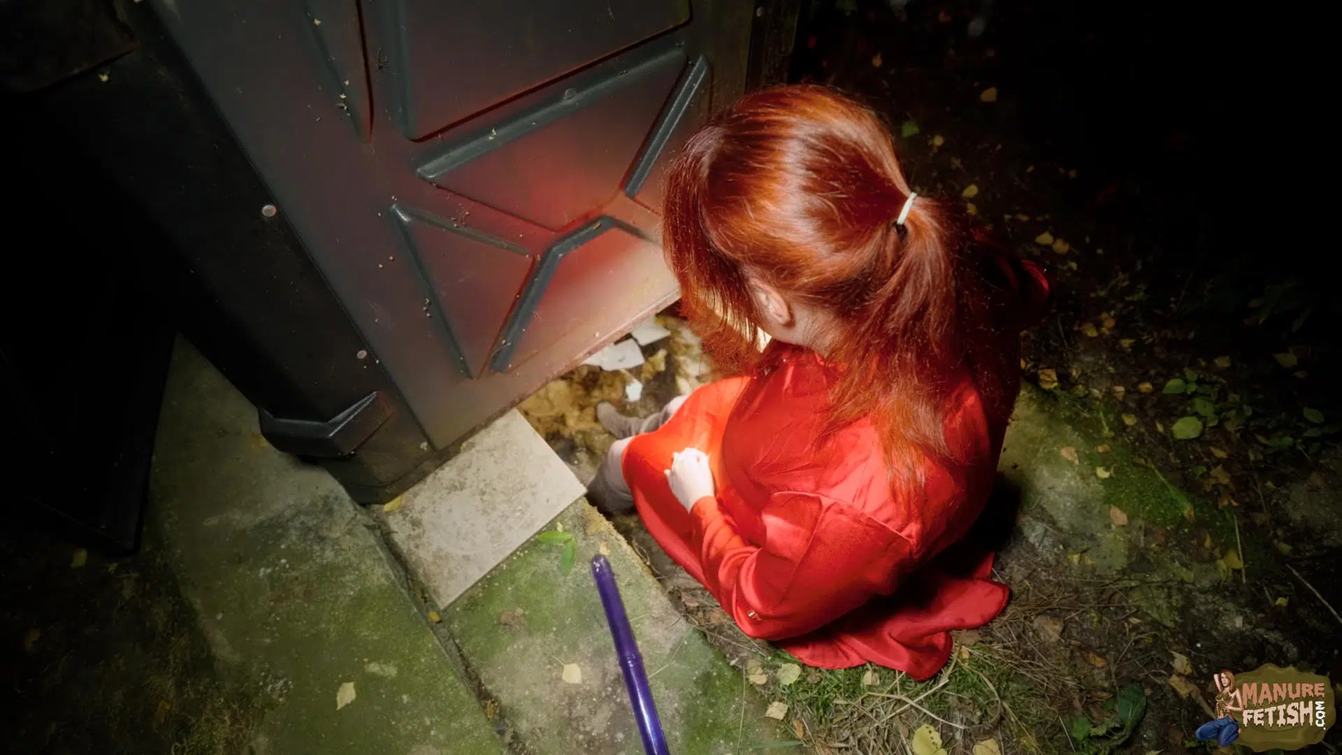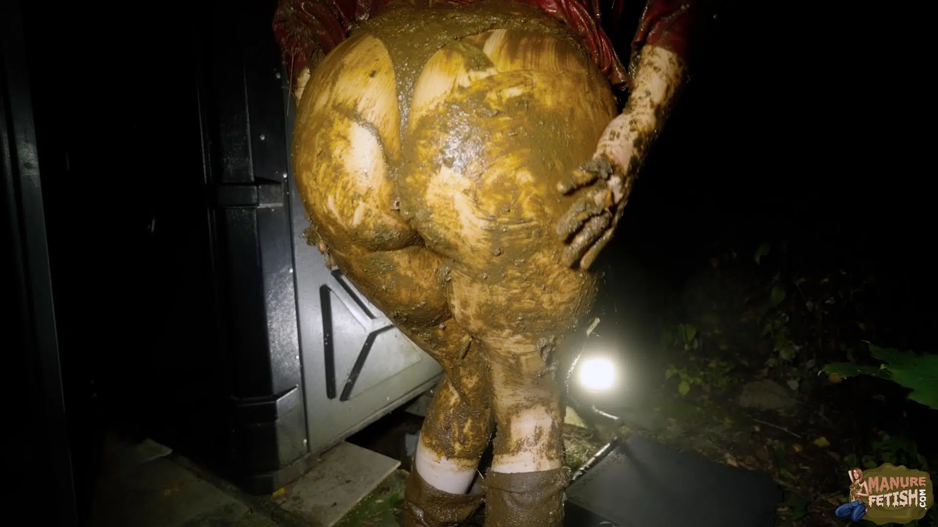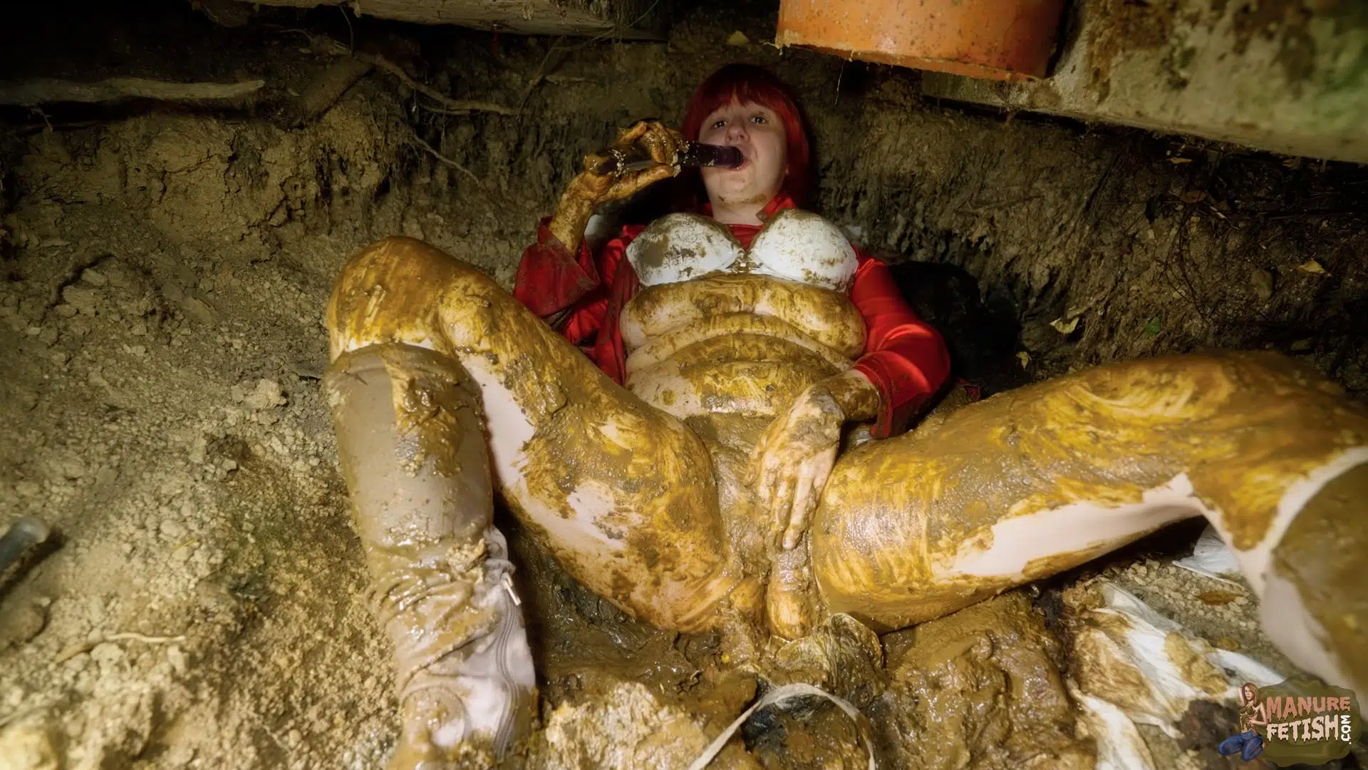 Now I’m finally in there in all that mess, ready to start my filthiest adventure ever. I slowly begin to smear the shit around my clothes and legs. Of course I brought a toy, I want to fuck myself hard while being covered in all that shit. At first it was really disgusting but I started to like it, it was so extreme fucking myself under an outhouse. Somehow I wished more shit would come from above, someone shitting right on me while I fuck myself. But sadly it didn’t happen so I had to shit on my own, to add some fresh creamy shit. Then I fingered and fucked my wet pussy hard. After I had an amazing orgasm I carefully climbed out of the hole, completely covered in shit and I was so happy.